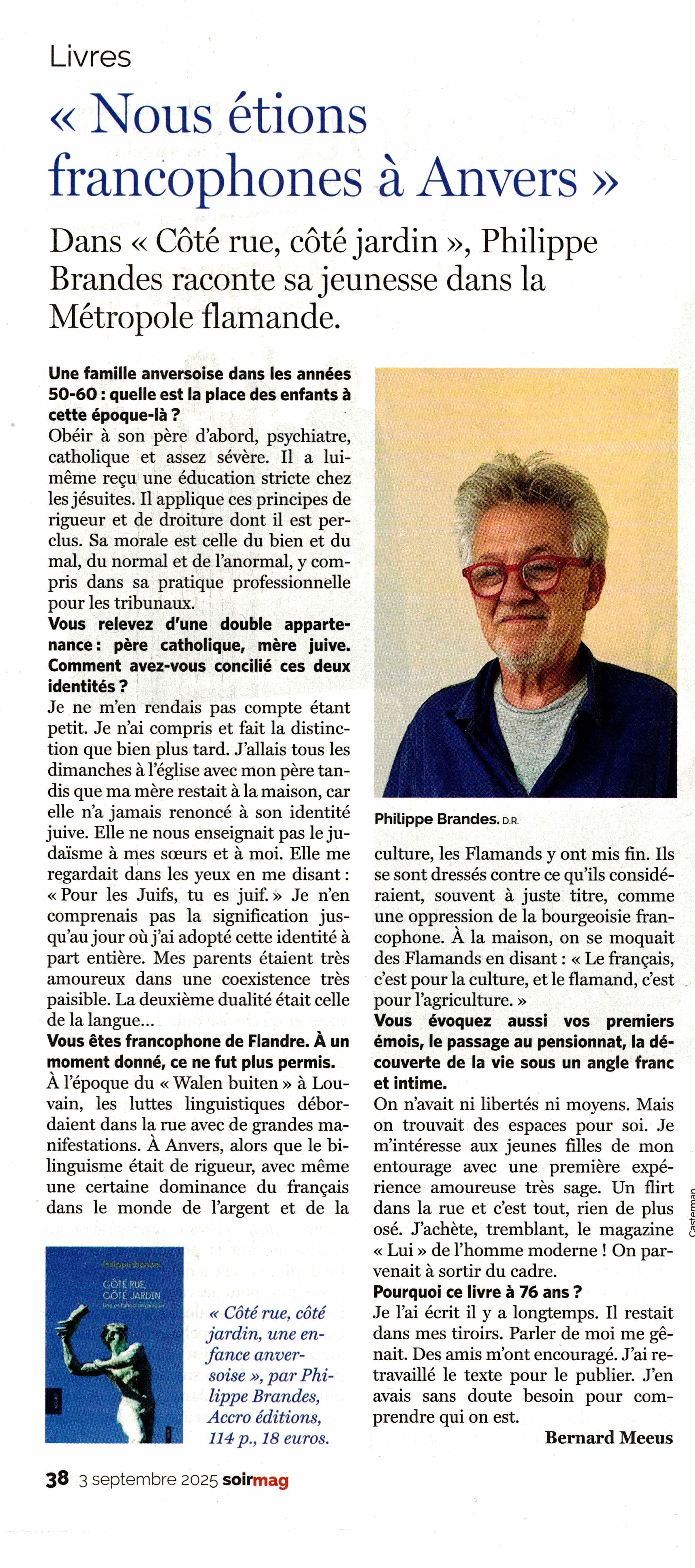Article de Bernard Meeus, Soirmag du 3 septembre 25